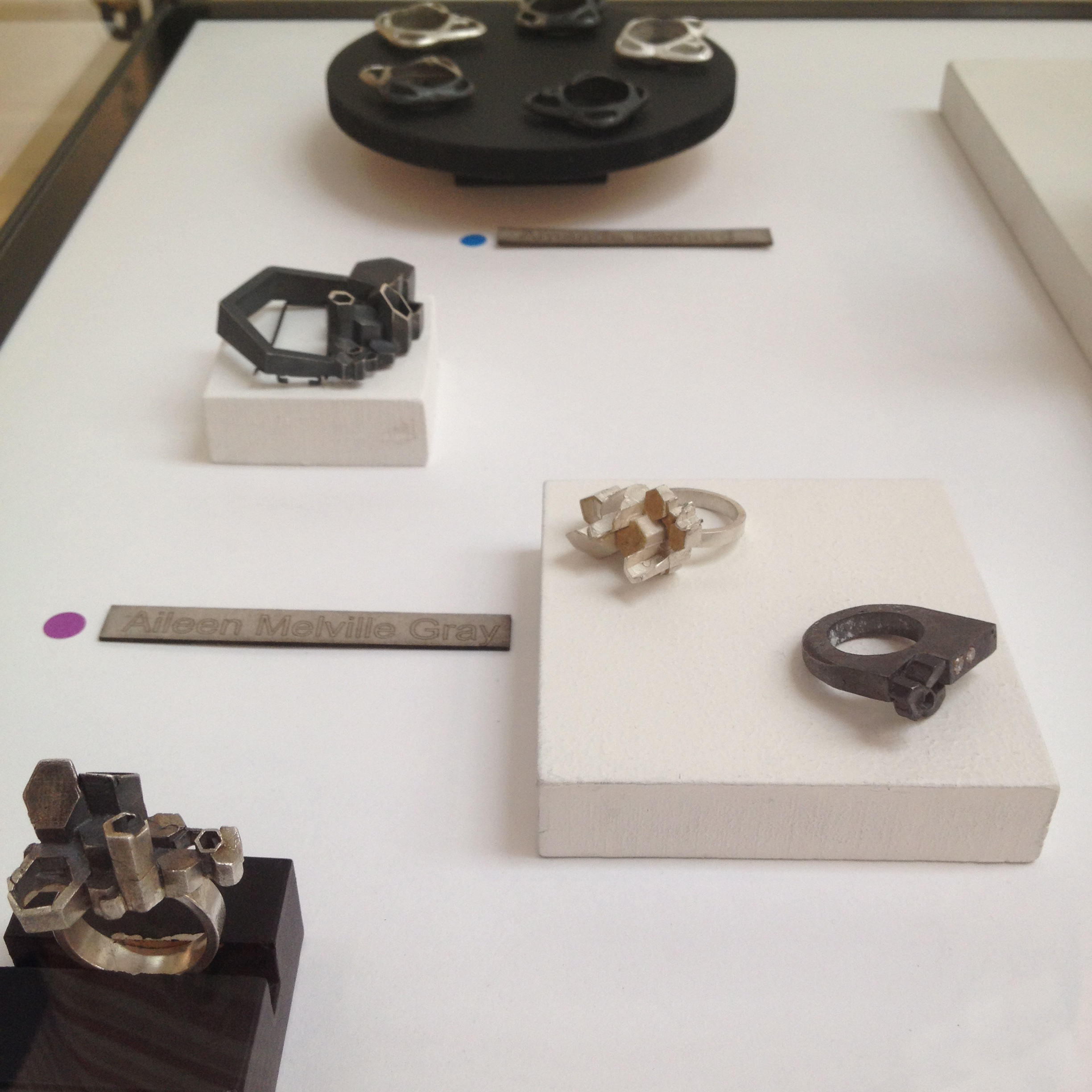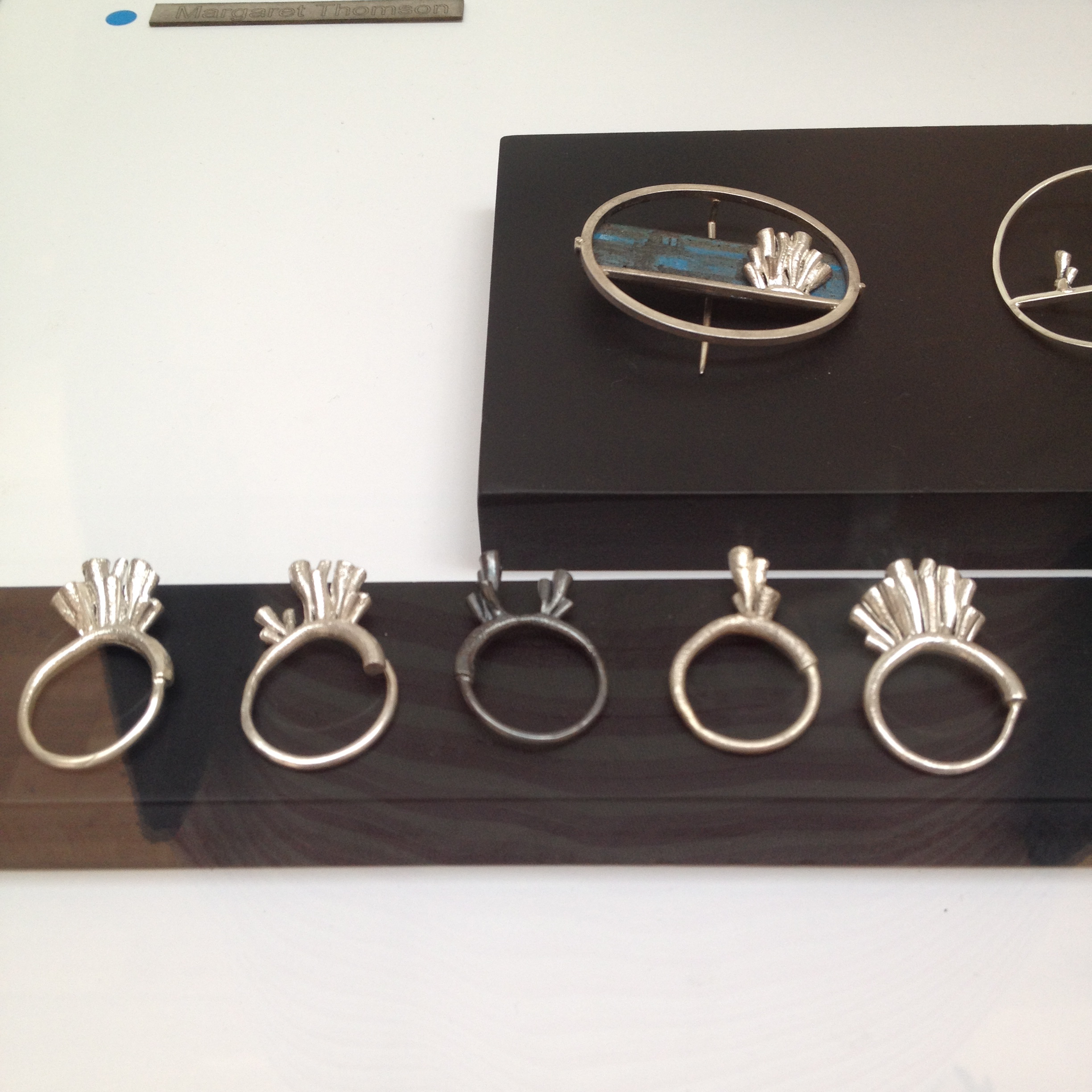 My birds are finally flying :)) Alongside some stunning work from my ex classmates – including, silver/orange necklace by Amanda McGrattan, not sure who made the slate rings unfortunately but they are also gorgeous. Silver ‘coral’ rings and brooch by Aimie McDiarmid and honeycomb pieces by Aileen Melville Gray. There were some other amazing pieces but I unfortunately didn’t get pictures of everything I liked. It’s still on until the 17th July – definitely worth a visit.