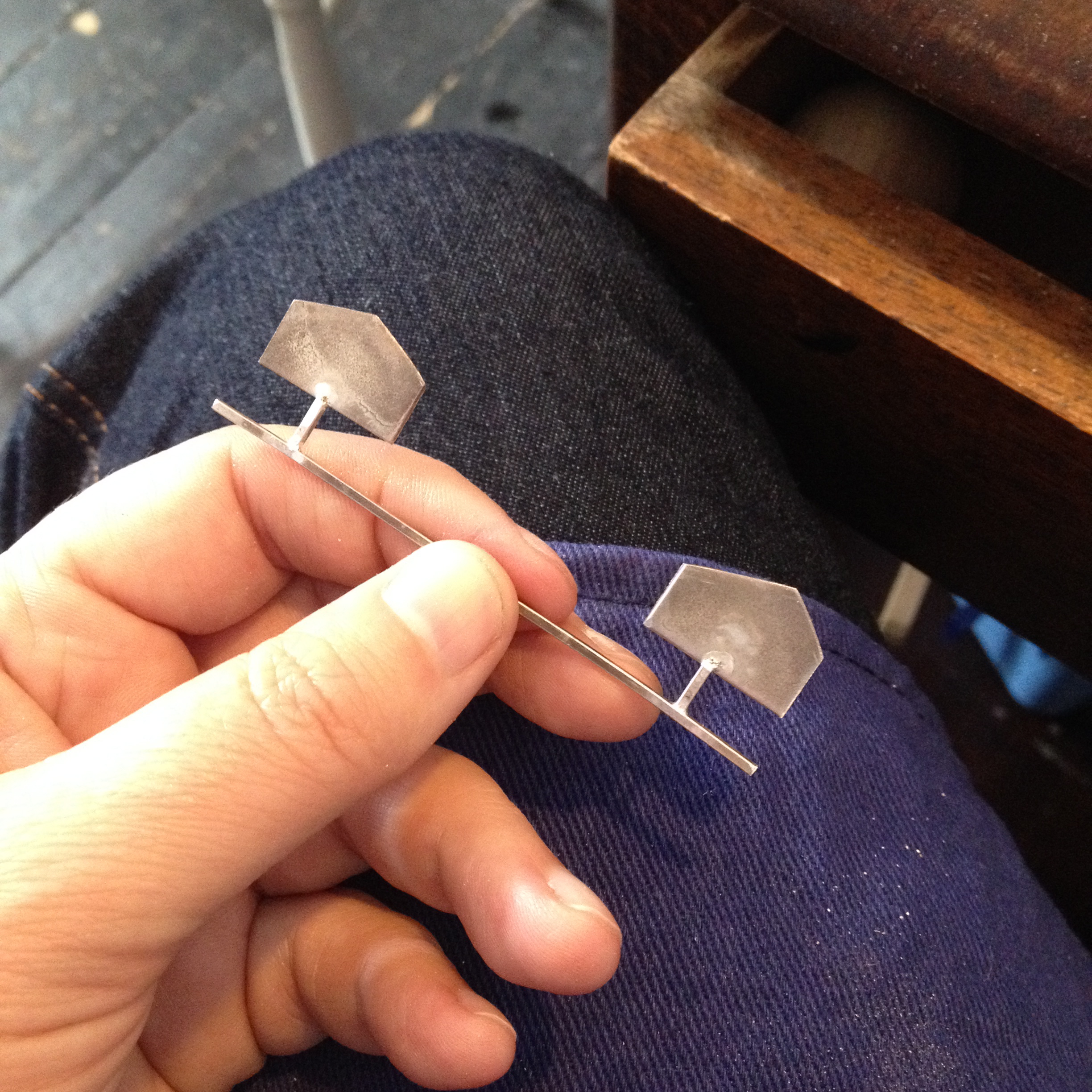 It’s an open and shut case, I’d say ;)) Well, almost, I still have to work-harden the wire to make it more durable for everyday use but, other than that, it’s almost there (shape-wise, at least – my client may choose a slightly more worn or hammered finish in the end – but it’s getting there!) Personally, I love it and think she’s onto a winner. A brilliantly simple, yet sophisticated, design solution. And just so charming (and elegant) in silver.