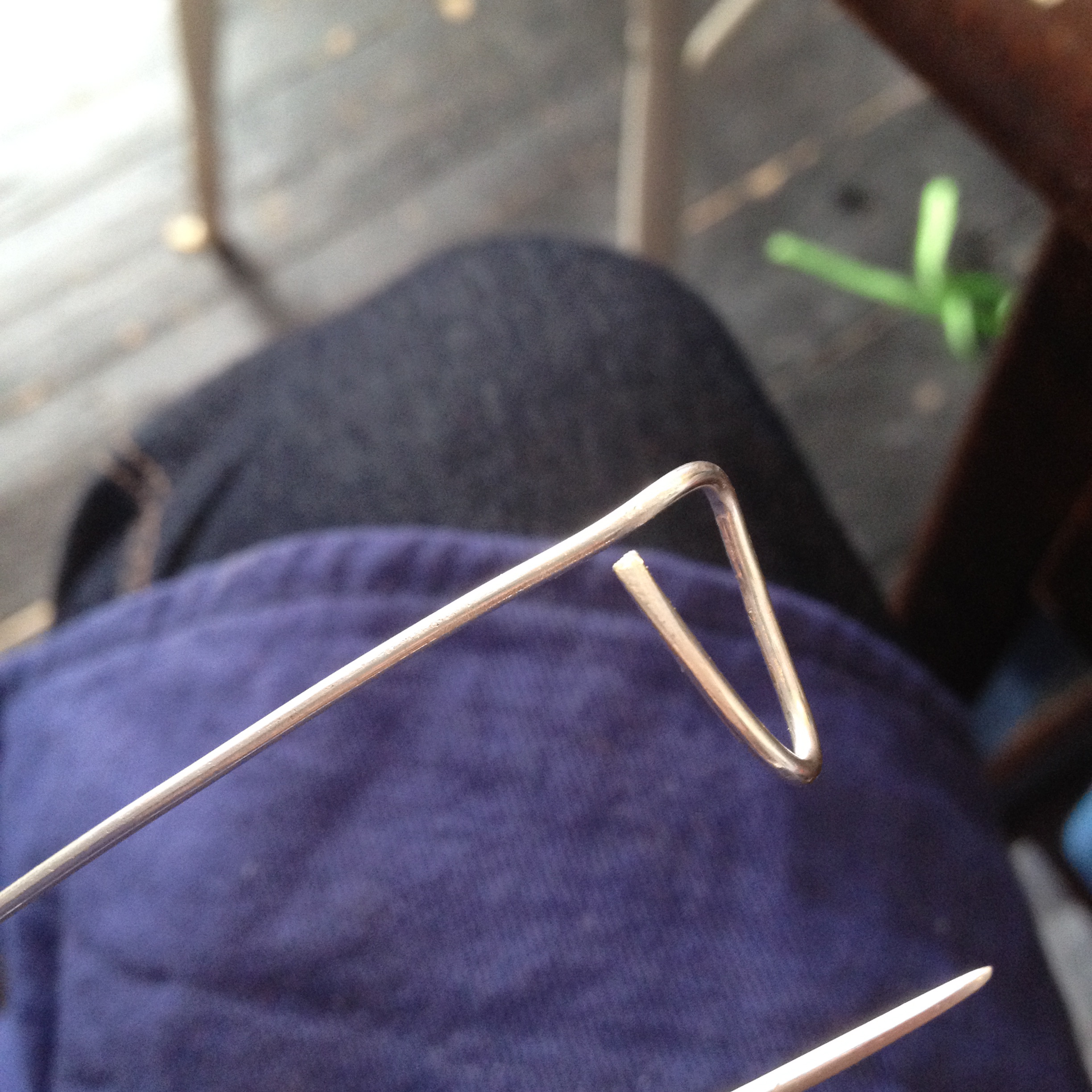 Shaping the wire, filing and sanding away any rough edges, so that it can glide through wool without snagging.