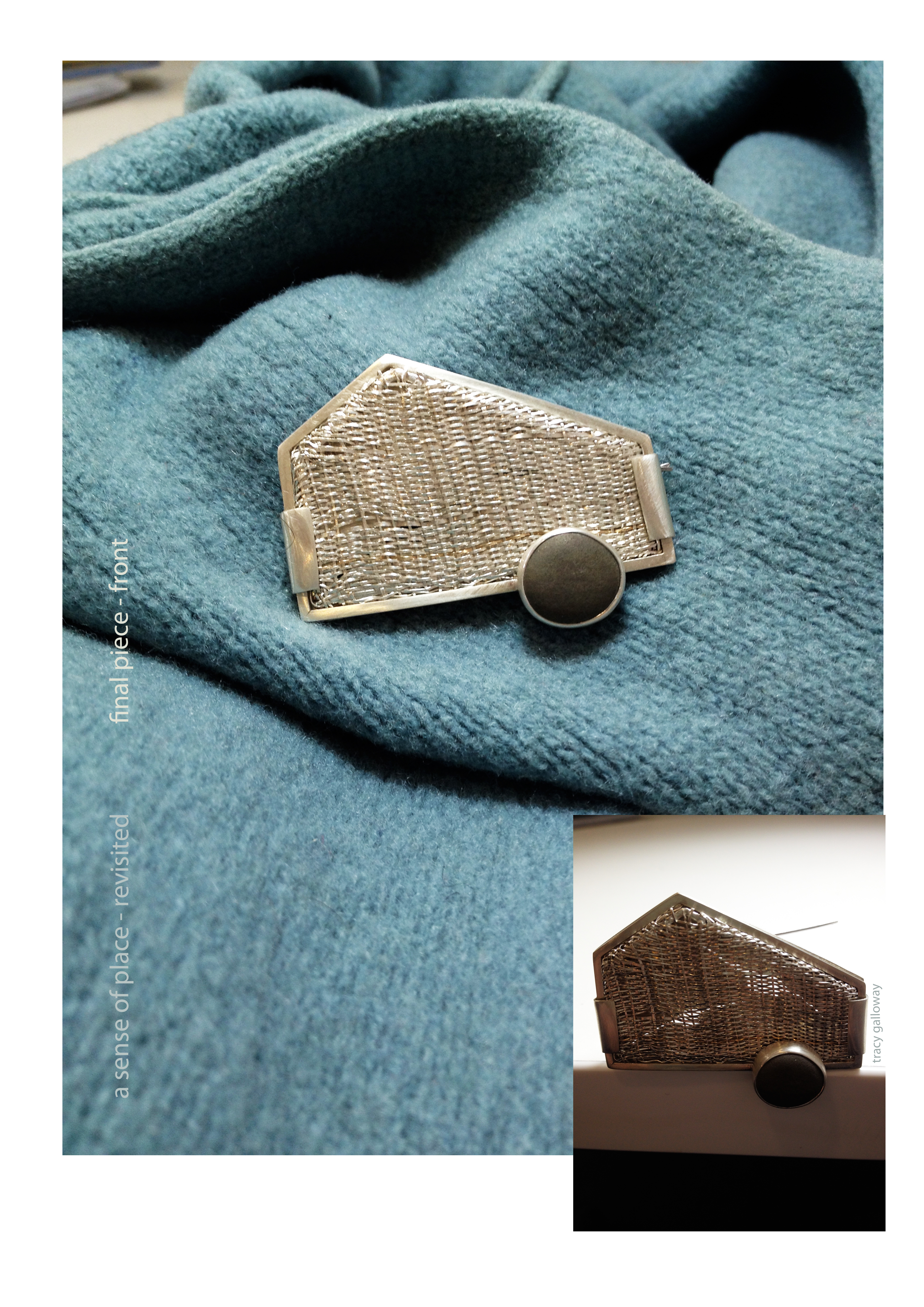 - cut out and pierce front of brooch – decide nearer time whether or not to use frontplate – I still like the idea of the woven panel on its own at this point in time